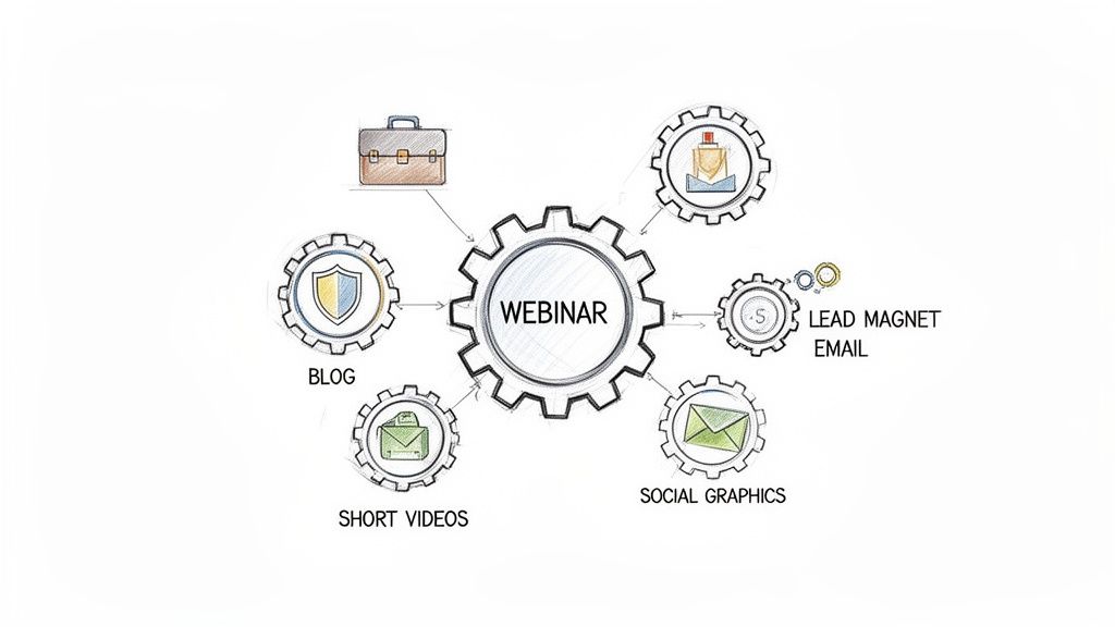 Think of a 60-minute webinar not as a one-off event, but as the central hub of your content strategy. Every word spoken and every slide presented is raw material that can be professionally repurposed. This model is the key to achieving scale and efficiency.