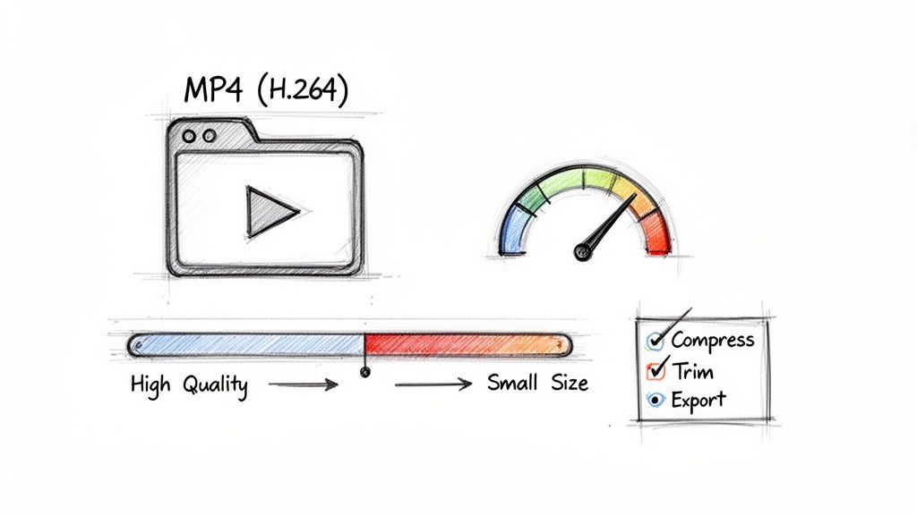 The objective of compression is to reduce file size while preserving visual clarity. For a busy marketing team, this is a critical efficiency gain. A well-compressed two-minute clip from a webinar can be reduced from 200MB to under 25MB, transforming a clumsy file into a lightweight asset your sales team can easily email to a prospect.