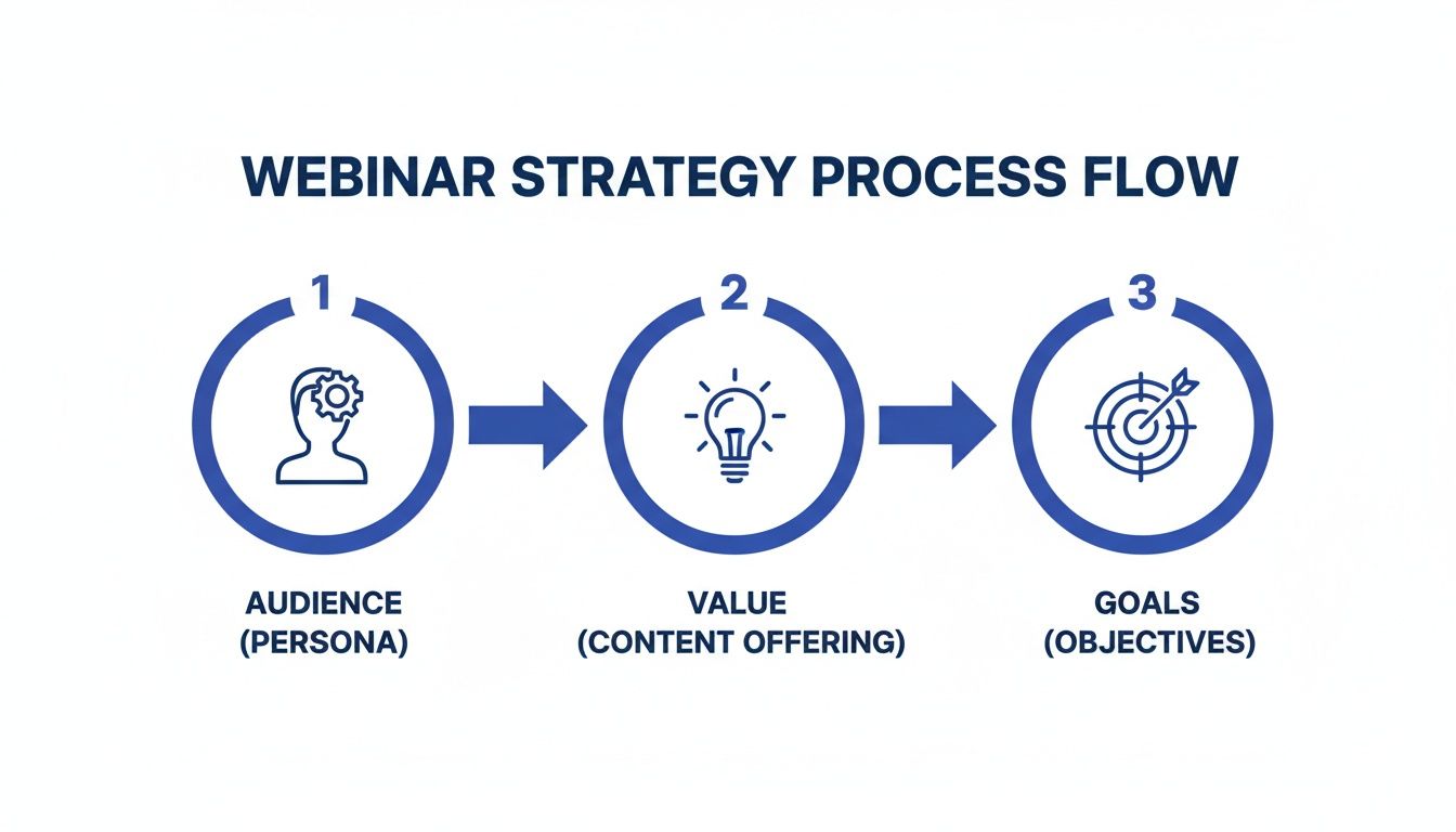 You can't just send out a few invitations and hope for the best. To really pack a virtual room, you need a solid strategy before you even think about promotion. This is about building a compelling reason for a very specific person to show up and setting goals you can actually measure, like hitting a 45% attendance rate or generating 50 marketing-qualified leads (MQLs). This groundwork is what separates an average webinar from an event that delivers measurable ROI.