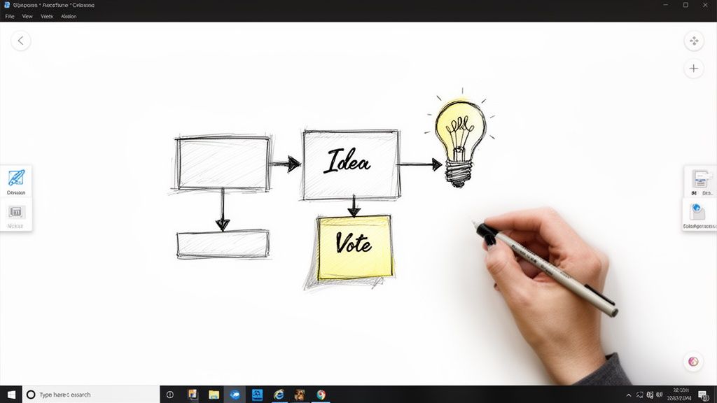Live whiteboarding moves beyond static slides, transforming your presentation into a dynamic, co-created visual experience. By using a digital whiteboard, presenters can illustrate complex concepts, draw frameworks, and map out workflows in real-time. This is one of the most engaging interactive webinar ideas because it mimics an in-person workshop, making abstract ideas tangible and easy to follow. Attendees can even be invited to contribute, turning a one-way lecture into a collaborative brainstorming session.