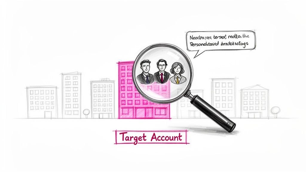While broad nurturing strategies are essential, your most valuable prospects demand a bespoke approach. A critical lead nurturing best practice is implementing Account-Based Marketing (ABM) nurture tracks. This strategy flips the traditional marketing funnel, treating each high-value target account as its own market. It involves using deep firmographic research to deliver hyper-personalised content and coordinated outreach to a buying committee, not just an individual lead.