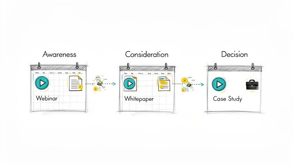 - A Scalable Content Engine: This is the fuel for your entire system. Without a reliable, efficient way to produce a high volume of quality assets, even the best strategy will stall. Webinars, repurposed into a cascade of clips, blogs, social assets, and one-pagers, are the most efficient way to power every stage of your nurture funnel.