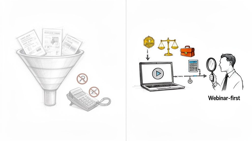 Let's be blunt: the old 'first contact' model for lead generation is broken. For firms in legal, finance, and consulting, where trust and expertise are the core product, the traditional sales funnel has been completely flipped.