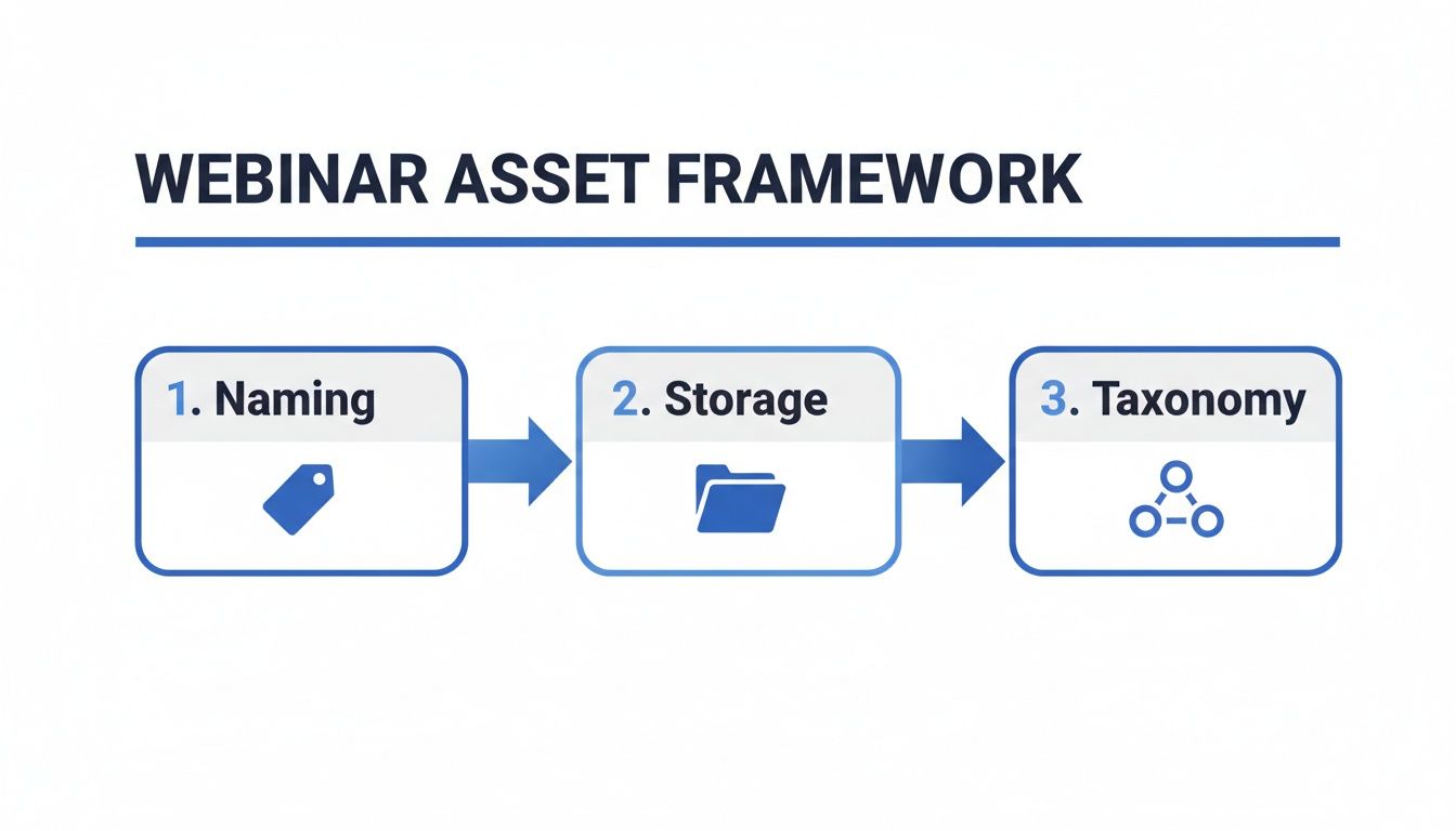 Let's be honest, a world-class webinar library isn't built on wishful thinking. It needs a deliberate, structured framework. Without one, even your best content gets lost in a digital mess of poorly labelled files and confusing folders, making it completely useless when you actually need it. This is where we lay down the rules for your entire content library, making sure every single asset is findable, usable, and ready to deploy.
