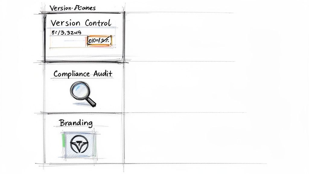 A robust version control process is your first line of defence against brand mishaps. When a product feature changes or messaging is updated, you need a system to instantly archive outdated assets and replace them with current, approved information. Without it, you’re running the risk of old advice circulating on your website or social media, potentially misleading prospects and damaging your company's reputation.