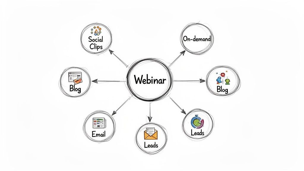 Instead of a one-off event, your webinar becomes a long-lasting content engine. It’s about methodically spinning that one-hour recording into dozens of smaller, valuable assets like social media clips, in-depth blog posts, and gated reports that keep fuelling your lead generation long after the live broadcast ends. Done right, this approach guarantees every US dollar you invest in a webinar delivers a measurable, compounding return.