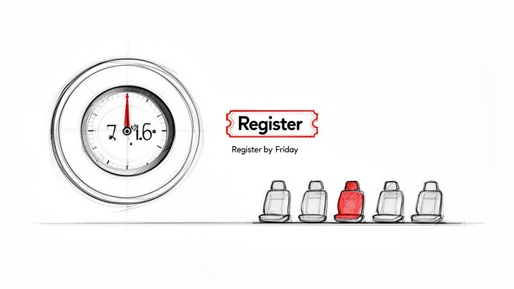 - Visualise the Deadline: Embed a countdown timer on your registration page. Visual cues amplify the sense of urgency and provide a clear, constant reminder. You can find more tips in our guide to webinar landing page best practices.