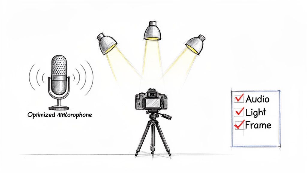 Your primary goal is to eliminate any technical distractions that could pull the audience's focus away from your message. This means moving beyond basic webcam and laptop microphone setups. A comprehensive webinar quality assurance checklist is essential for consistency, especially for content teams managing multiple speakers.